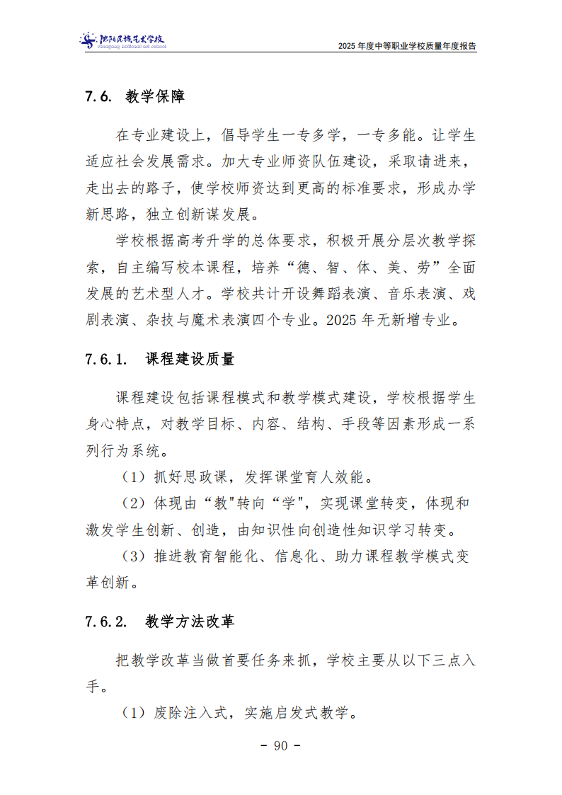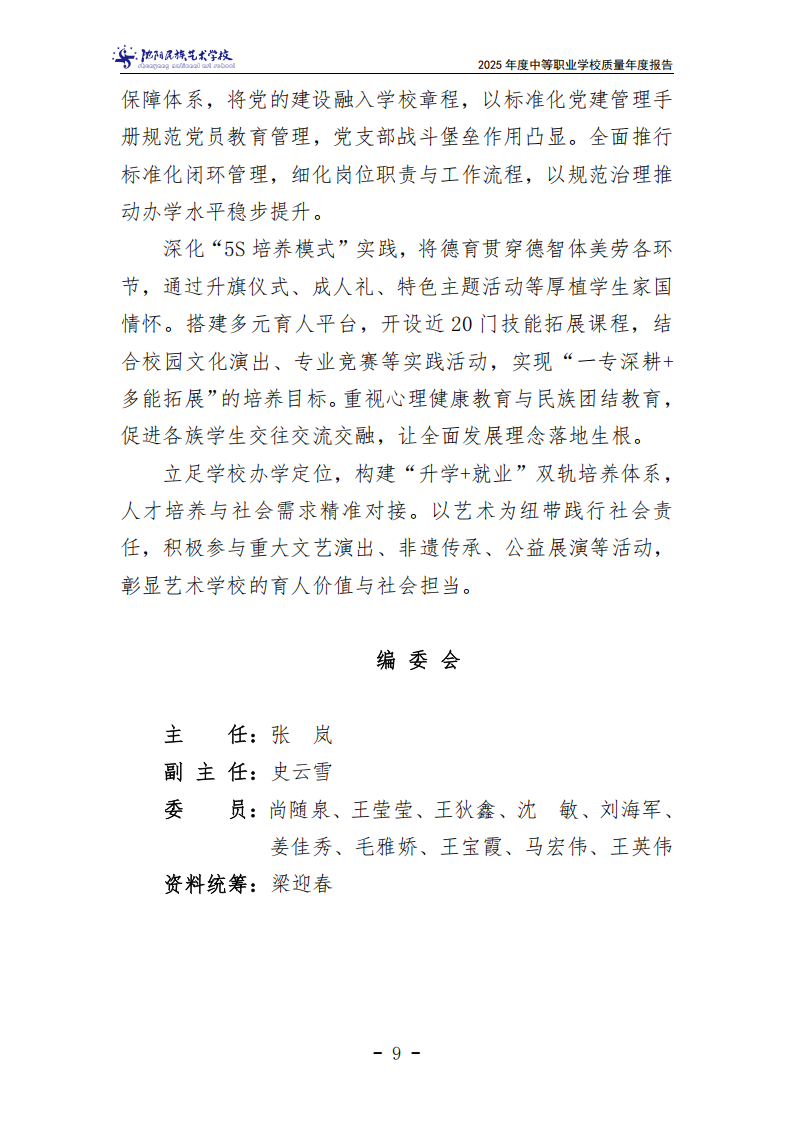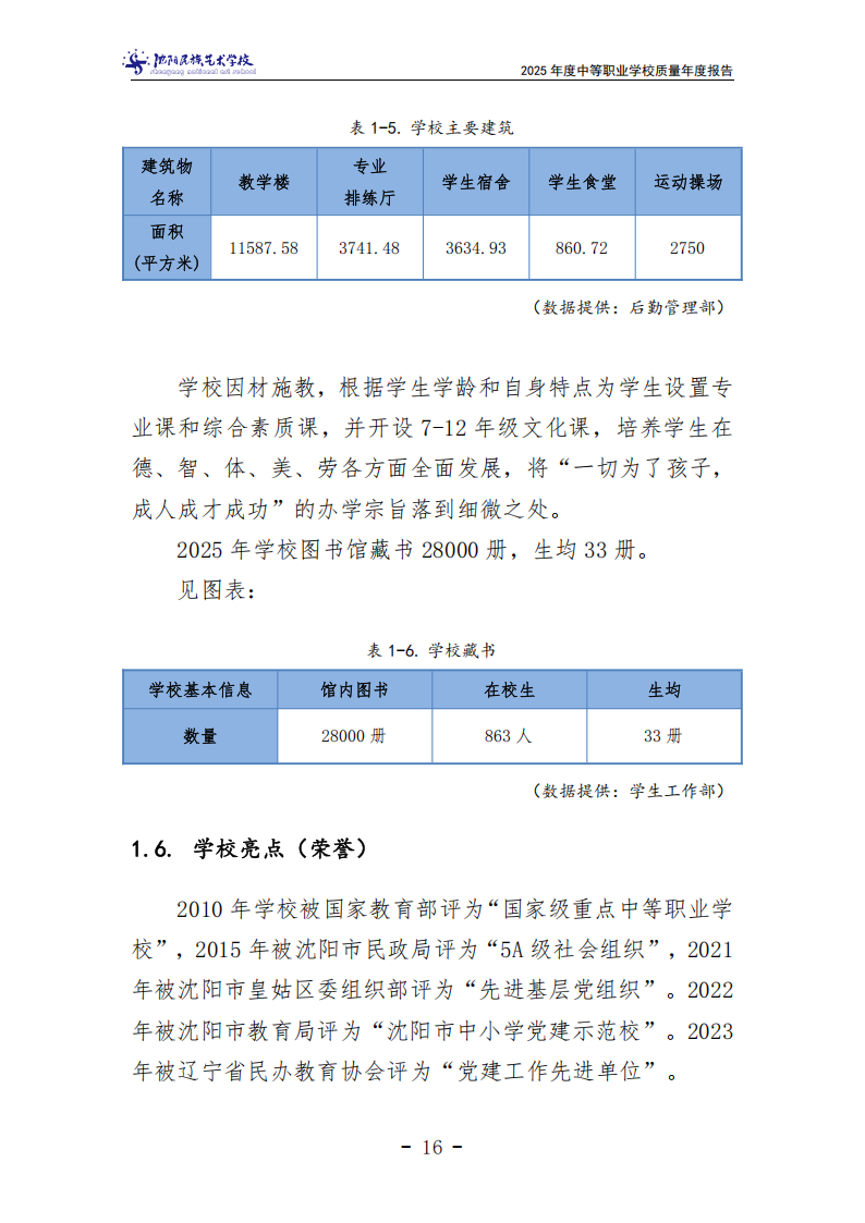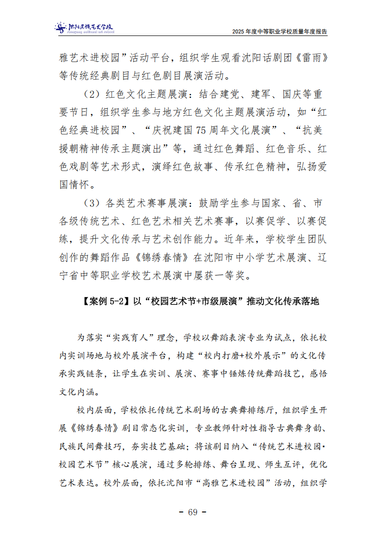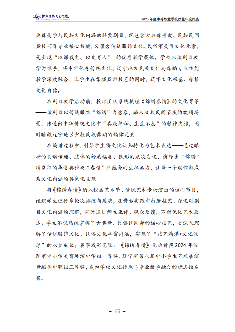 沈阳民族艺术学校中等职业教育质量年度报告(2025年度)