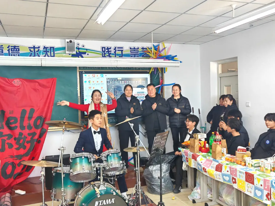 校领导们轻轻地推开一扇扇门,驻足片刻,观看同学们的表演,送上亲切的问候与祝福。没有拘束,只有目光中的赞许和笑容里的温暖,如同家人闲坐,为这个夜晚注入了真挚的温情。
