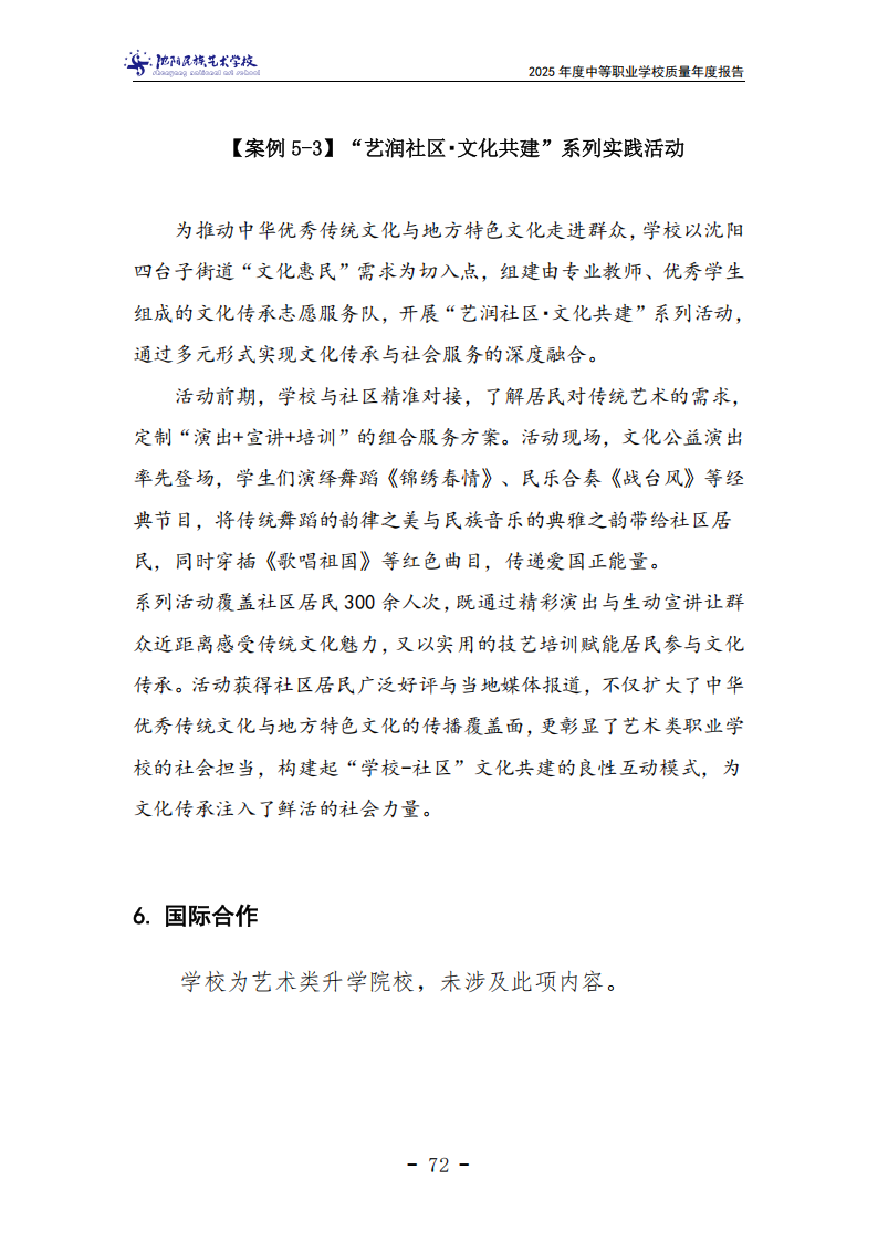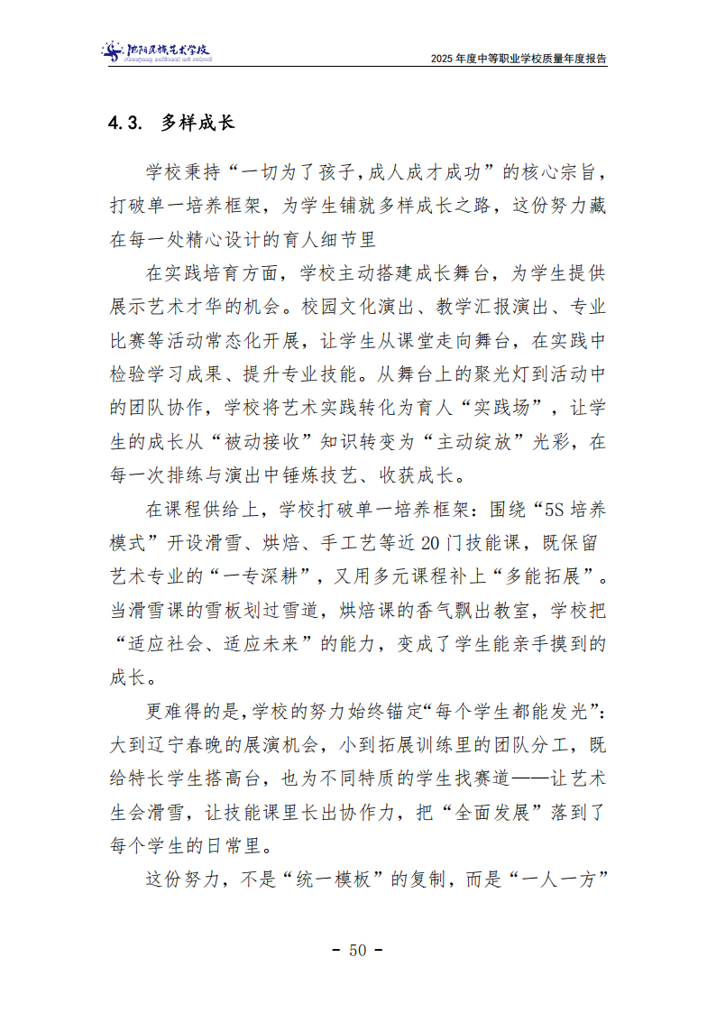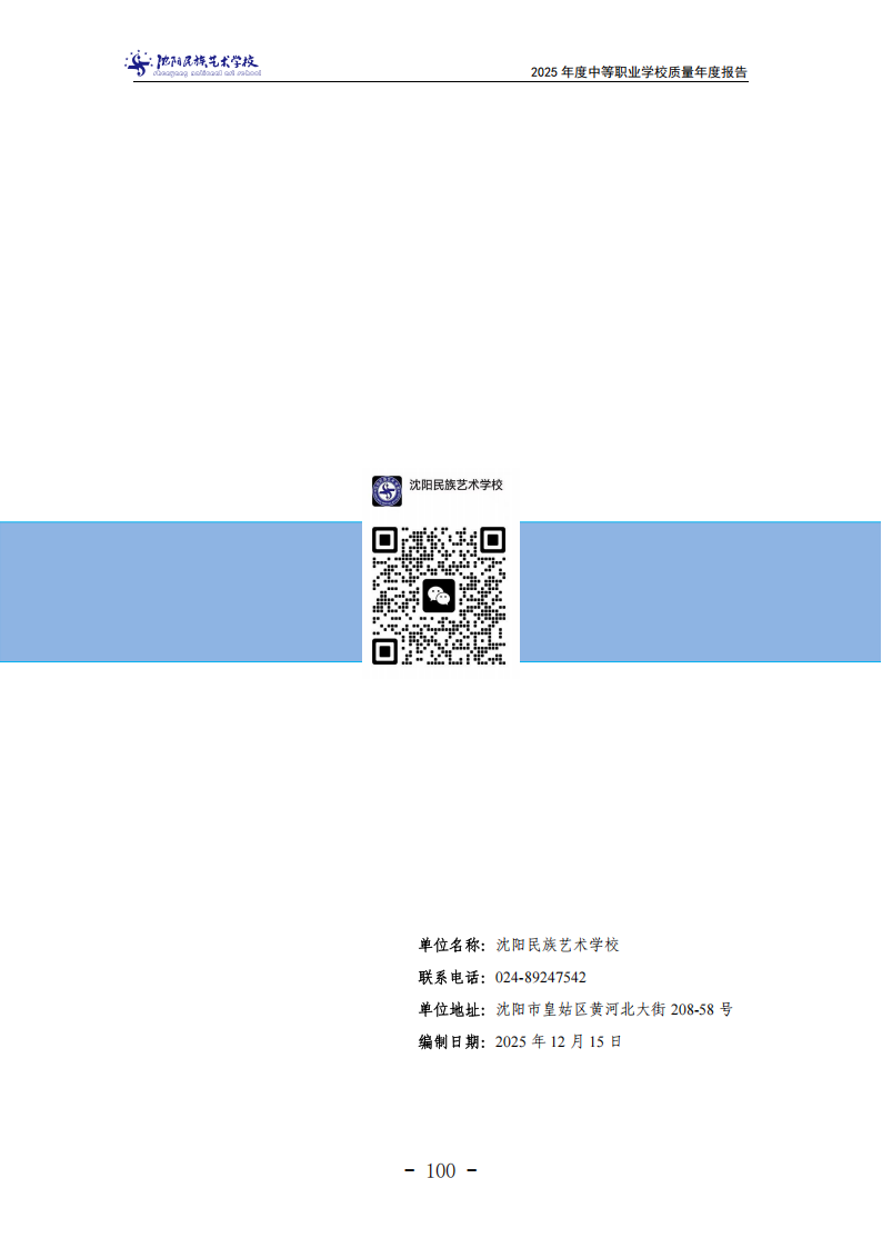 沈阳民族艺术学校中等职业教育质量年度报告(2025年度)